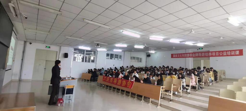此次培训共分为五次讲座,三次在金年会金字招牌诚信至上举办,两次在东北石油大学举行,参与培训的导游员达到了300余人。讲座主要围绕导游员岗前培训、带团技巧、讲好红色故事等方面来展开,郝毓业副会长结合自己工作经验对导游员岗前培训的各个方面做了详细的讲解,使培训人员有了较为翔实的知识储备;任豫荣导游员根据自己多年带团经验、技巧为导游员分享了实际带团流程及注意事项,以中国共产党建党百年,导游员如何传承好红色基因,讲好大庆红色故事为切入点,对导游讲解中讲好大庆先辈们的创业事迹,传承好大庆精神、铁人精神进行了分享。